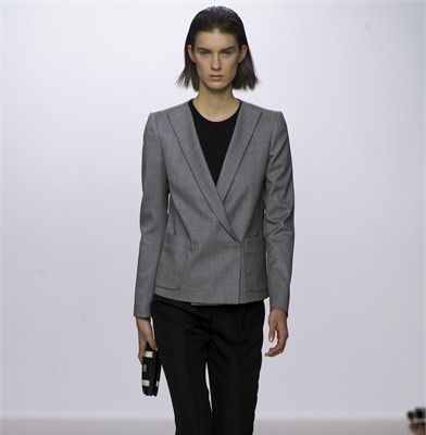 Per le ore da trascorrere in ufficio la giacca in grigio sul pantalone nero aderente a sigaretta evidenzia uno stile fresco e nello stesso tempo riservato. Il taglio della giacca è molto lineare e segue la linea del busto senza esagerare, anche il colletto è molto minimal.