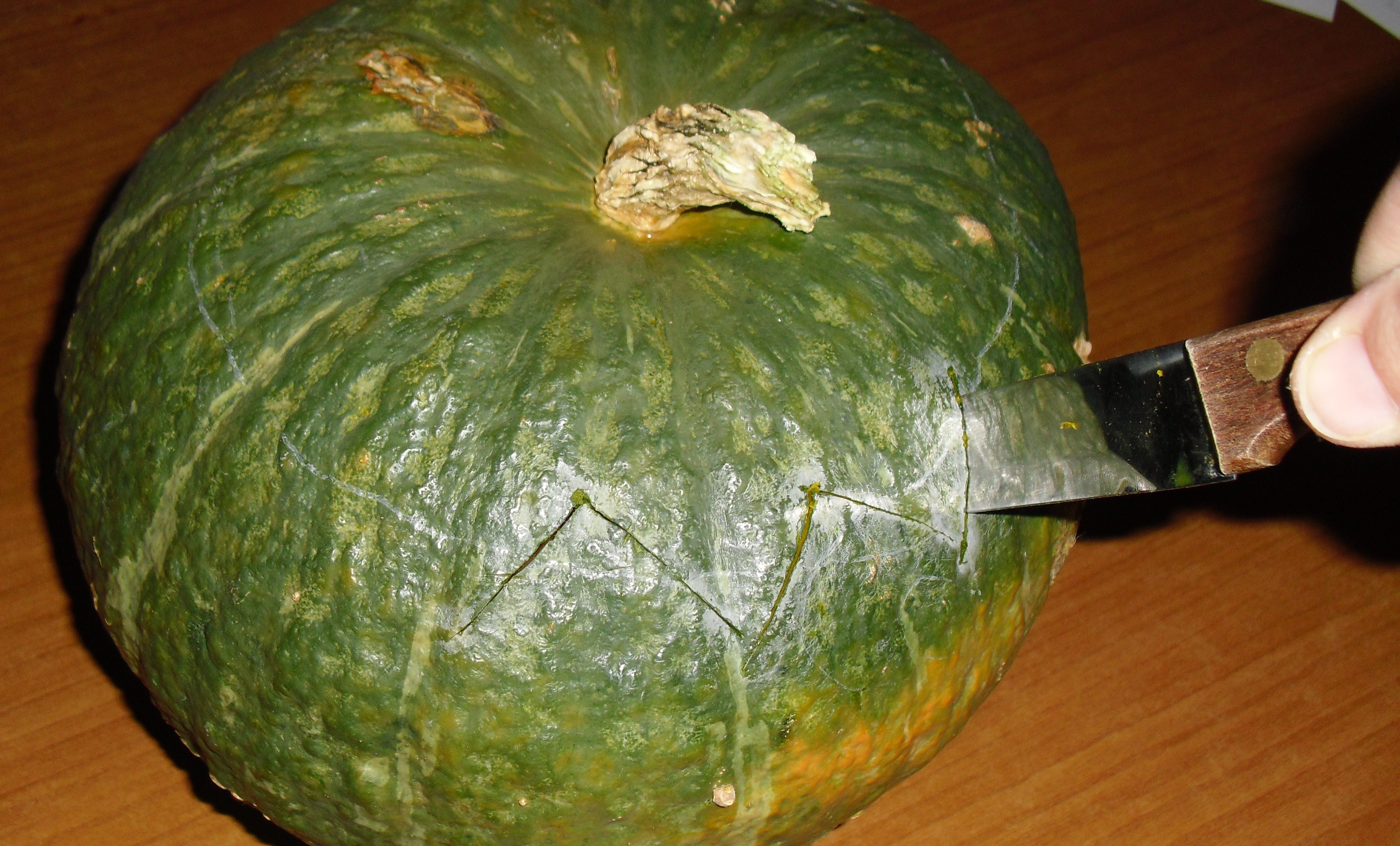Una volta acquistata la zucca, bisogna lavarla e asciugarla bene, munirsi di coltello e iniziare.