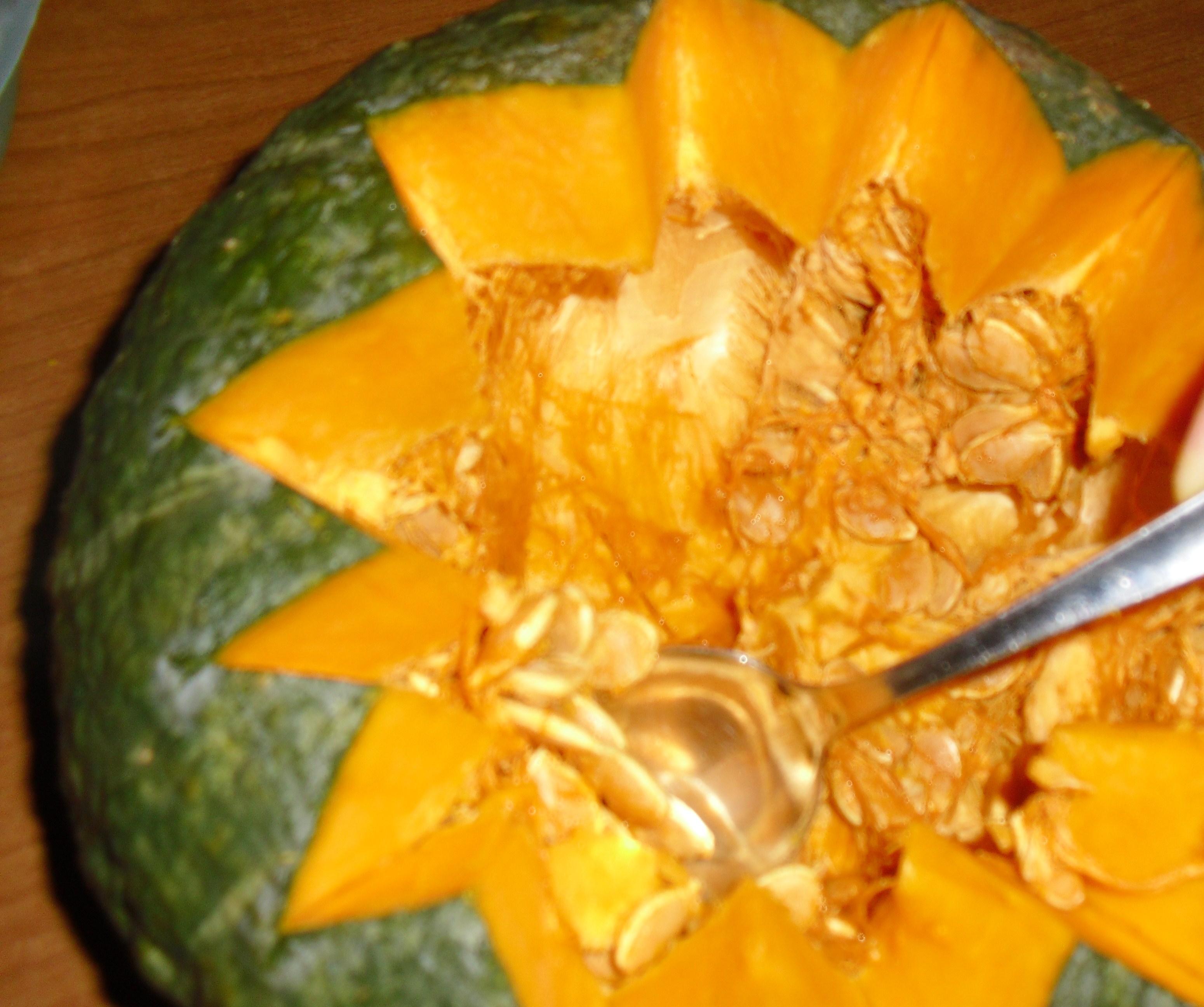 Ciao Silvia, visto che hai usato una zucca marina (più buone, come hai giustamente fatto notare, di quelle classiche arancioni, usate ormai solo per il foraggio zootecnico…), consiglio di non buttare i semi, ma di lavarli, asciugarli, salarli e tostarli al forno: sono un ottimo snack da sgranocchiare 😉