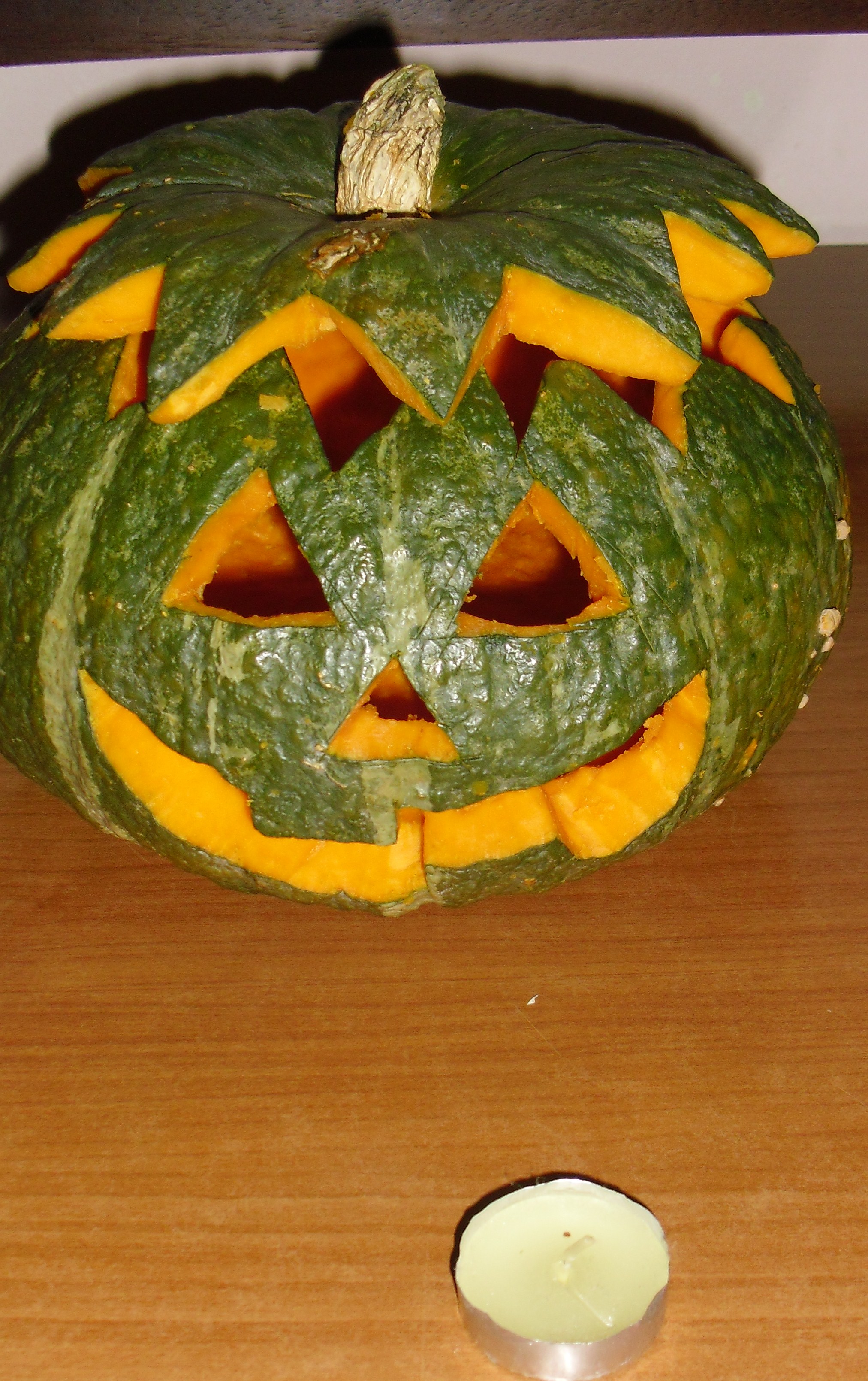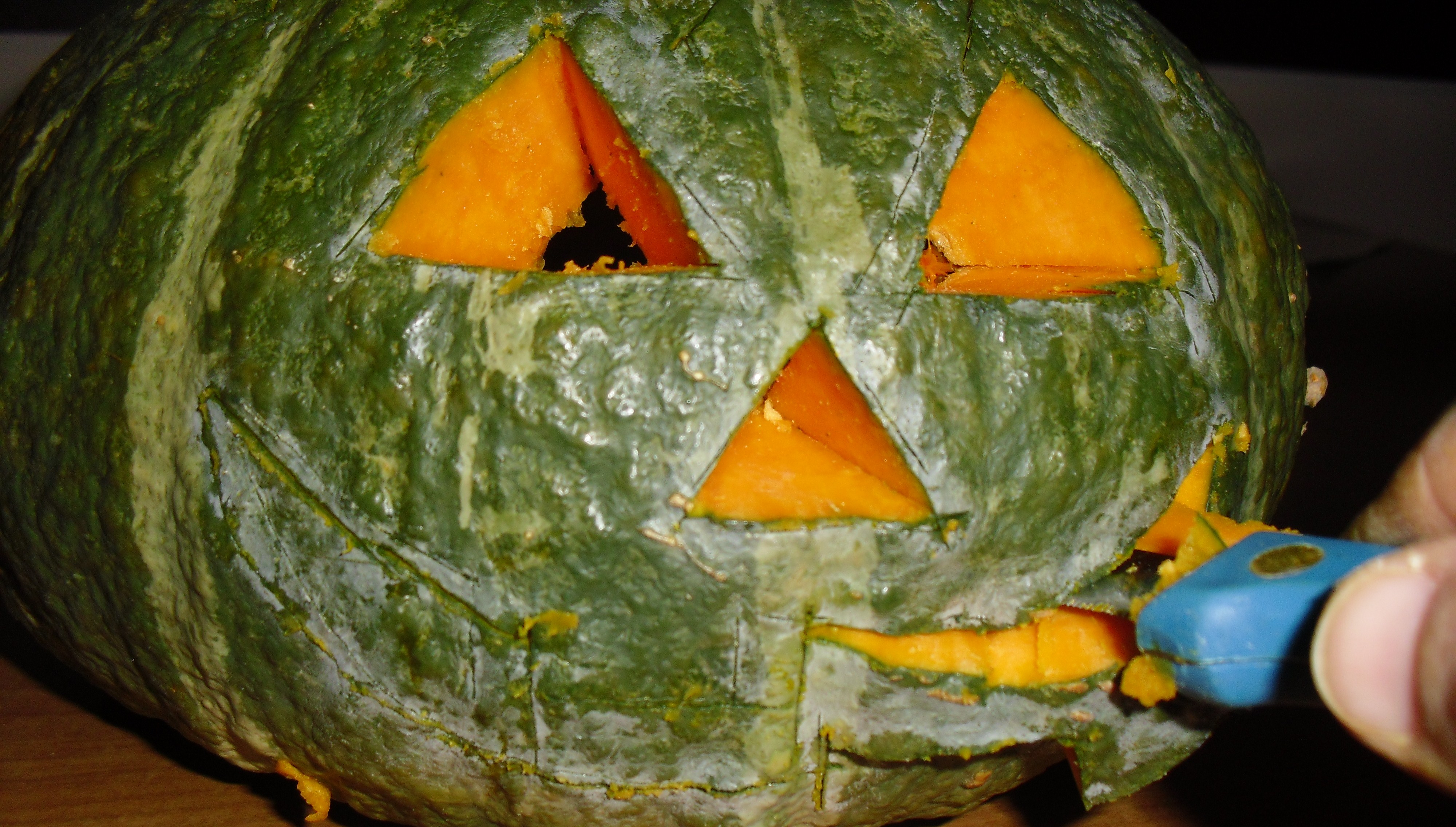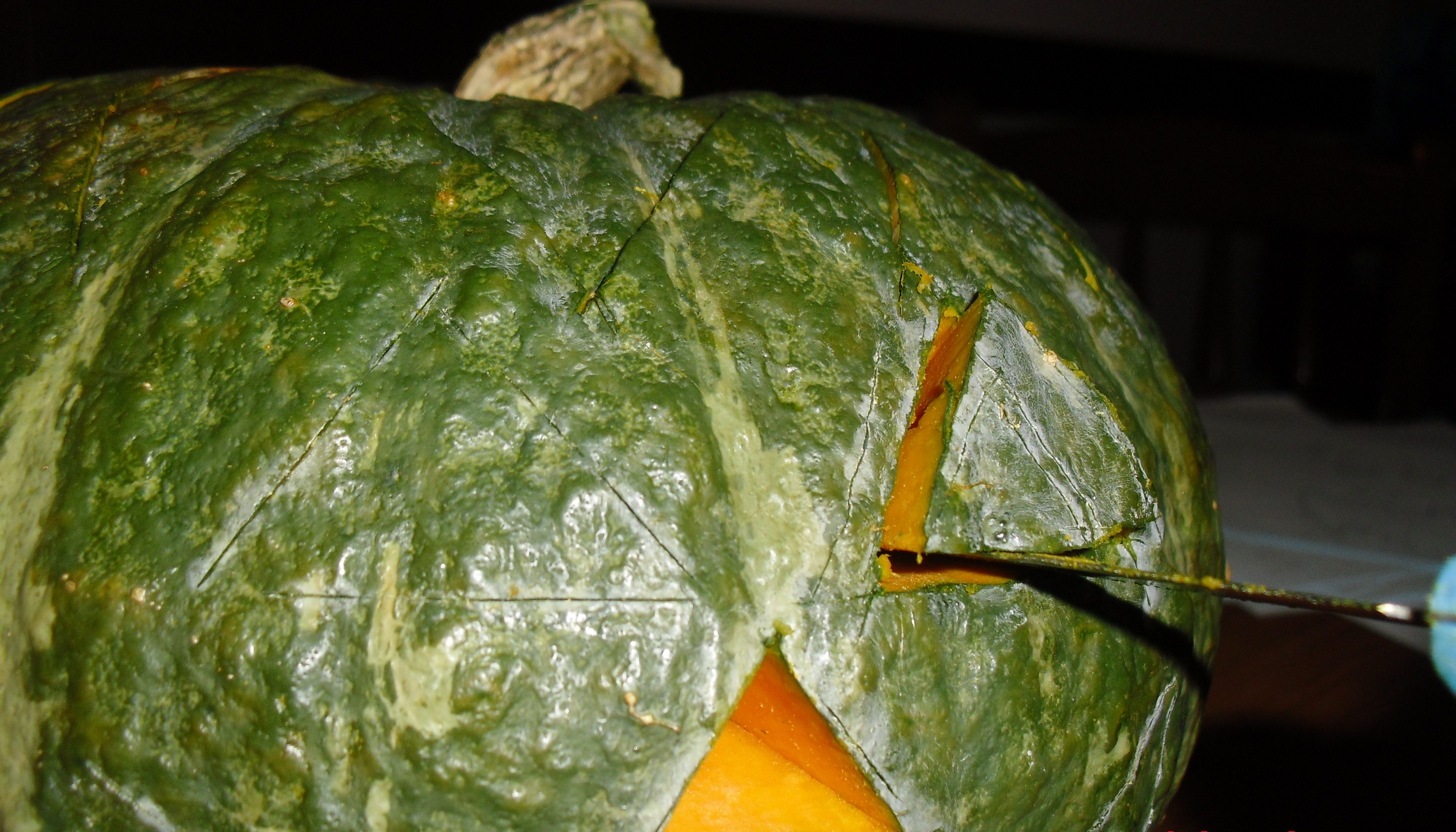 Per l’intaglio sarebbe ideale la tipica zucca arancione; in commercio se ne trovano di tutte le misure e sono le più morbide da lavorare. Purtroppo hanno il lato negativo di non essere buone da mangiare.