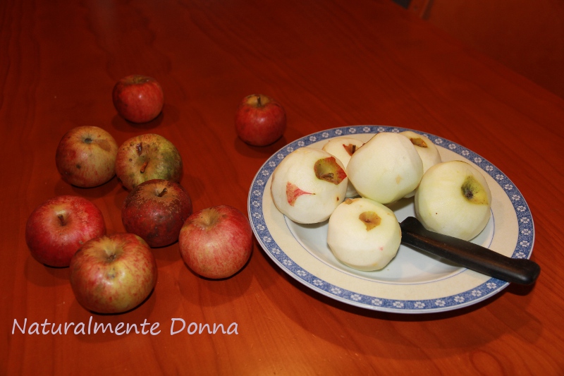 Noi abbiamo mele piccoline, non so nemmeno a quale qualità appartengano, e quindi ne abbiamo sbucciate parecchie. Forse più degli 800 grammi consigliati.