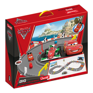 Si possono costruore piste sempre diverse e posizionare scenari ed ostacoli a piacimento. Alla partenza del circuito è posizionata la mitica macchinina rossa di Saetta McQueen con una “molla” che i bambini dovranno utilizzare per lanciare la propria biglia. Big Cars 2 è composta da 88 pezzi, tra cui una macchinina lancia biglie a molla a forma di Saetta McQueen, 4 bandiere, 5 segnaposto, 12 segnavia e 2 tralicci. Sono inoltre presenti 4 scenari e 5 poster da appendere nella cameretta del pilota più in gamba!