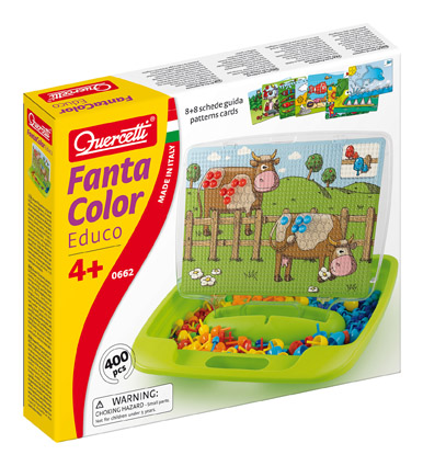 Fantacolor Educo è un nuovo gioco creativo che, attraverso la manualità e l’osservazione, aiuta i bambini in età prescolare a familiarizzare con le attività fondamentali della scuola materna. Rappresenta un nuovo modo divertente e dinamico di ripetere a casa ciò che i bambini svolgono in classe utilizzando i chiodini al posto dei pennarelli.