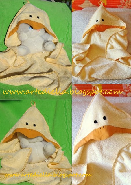 Io vi consiglio di scegliere una spugna molto morbida e spessa, per avvolgere al meglio il vostro piccolino; trovo comodissimo il cappuccetto per tenere al caldo la testina, oltre ad essere davvero simpatico!