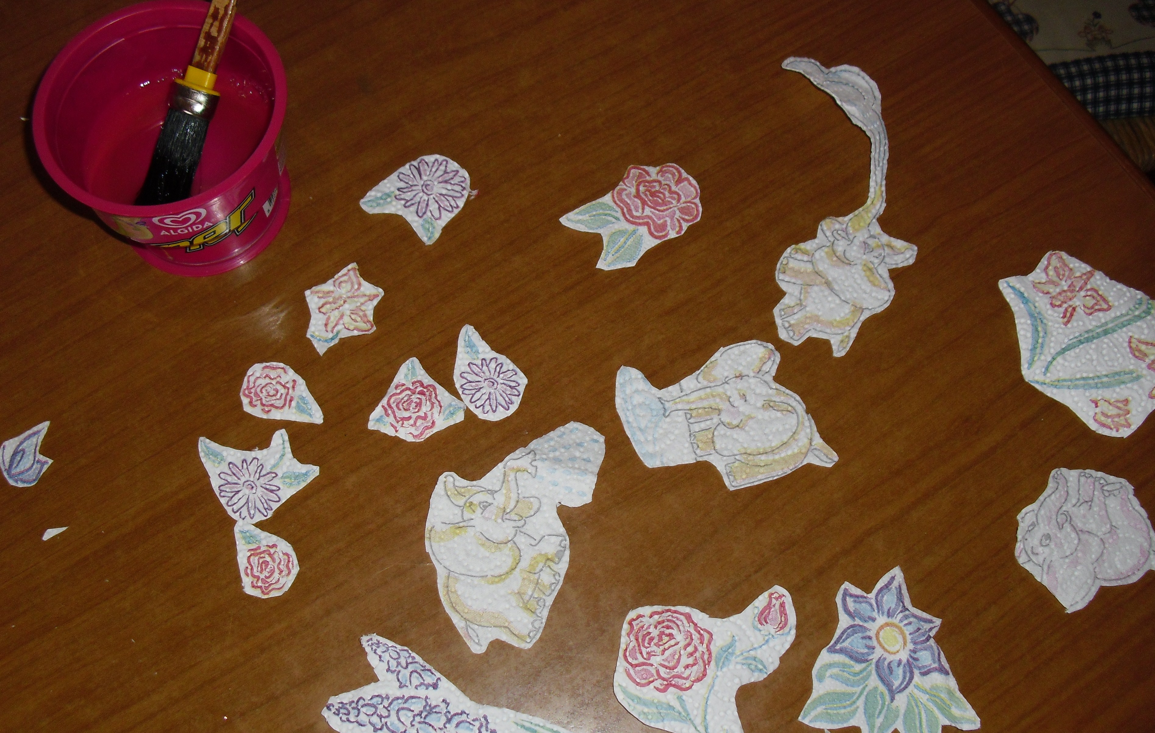 Innanzitutto bisognerà ritagliare dalla carta cucina i disegni con cui desideriamo decorare le nostre uova (immagine 1)