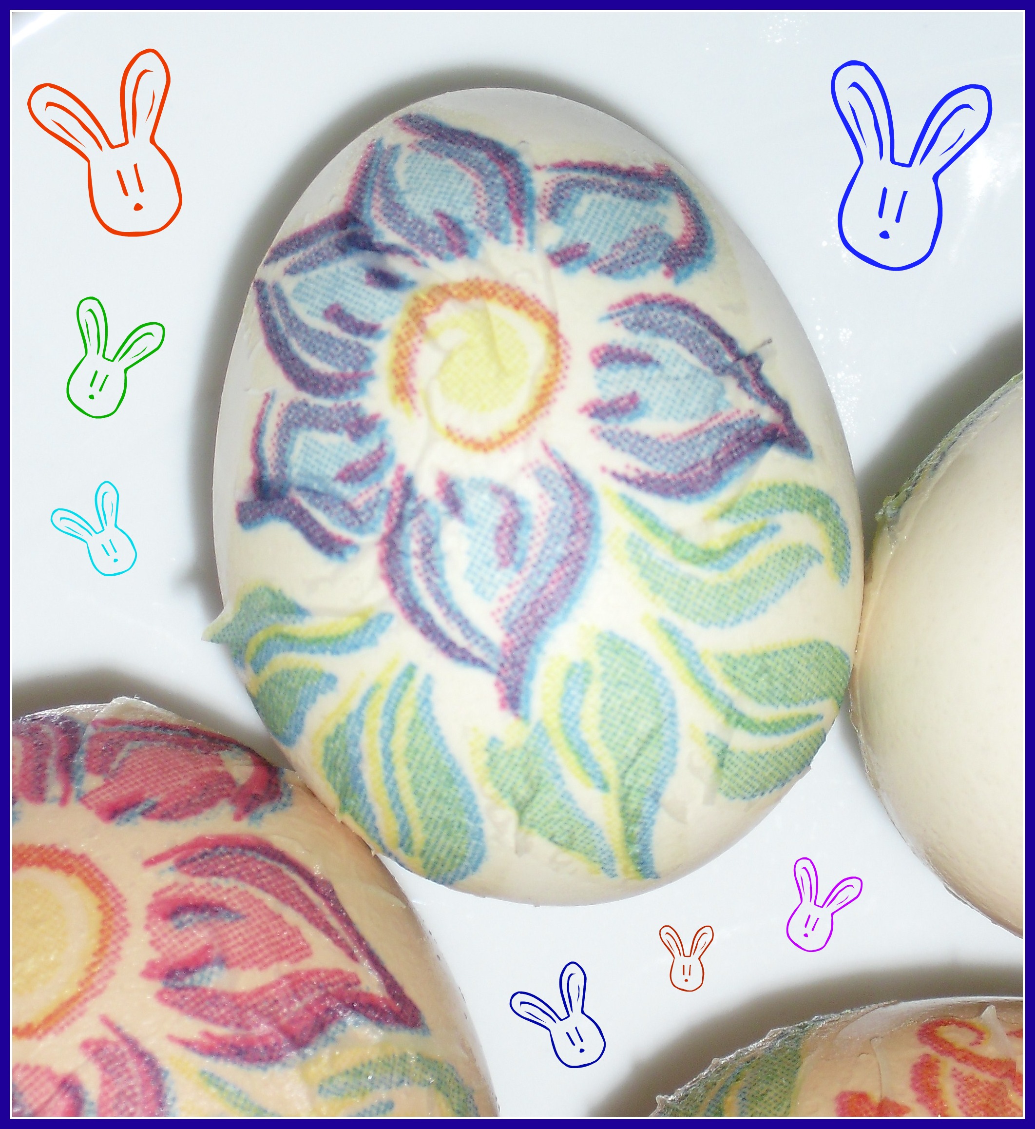 Ci sono innumerevoli tecniche per decorare le uova sode: si possono colorare in bollitura con coloranti o con ingredienti naturali come ad esempio le bucce di cipolla o la curcuma, si possono dipingere con i pennarelli o ci si possono attaccare degli adesivi. La scelta del modo e dei materiali da usare vengono molto influenzati dalla necessità di mantenere l’uovo commestibile o meno. In genere non uso il cibo solo come decorazione, lo vedo un pò uno spreco, quindi per me un punto fondamentale è decorarle in modo da poterle poi mangiare.